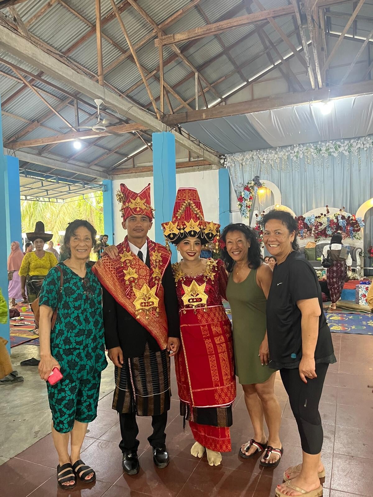 Onze eerste week op Noord Sumatra (Ecolodge Bukit Lawang) zit erop. Een week vol avontuur en verrassingen op een prachtig eiland met een ongerepte natuur. Wat hebben we toch genoten van de vele excursies. Zoals van olifanten wassen en hen voedsel geven. Hoge hangbruggen oversteken. Gelukkig kreeg Shirley begeleiding van onze gids...haha. Genieten in het zwavelbad en daarna afkoelen onder de waterval en aansluitend lunchen aan de rivier. Ook was het flink afzien tijdens onze heftige jungletocht met veel klimmen en klauteren. Met als hoogtepunt een orang-utanmoeder met haar jonkie. Het spectaculaire raften in de banden blijft ook leuk. Boodschappen doen op de lokale markt en daarna een kookworkshop bij kokkin Nur. Ik heb alle recepten opgeschreven. Het bekende straattafereel met hele families op één brommer of vol bepakt met spullen is zo grappig om te zien. Gisteravond genoten van een reggae concert in Jack's cocktailbar en ons daarna laten thuisbrengen door drie boys op een brommer. Scheuren kunnen ze wel. Adoe zeg! Opvallend was dat we op een dag twee vlinders zagen die heel lang bij ons bleven op mijn vinger en op mijn been. Een signaal van mama en papa.